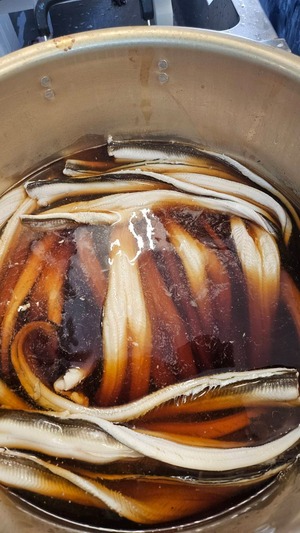 江戸前の新鮮な活穴子を丁寧に裂き、秘伝のタレでじっくりと煮込んだ煮穴子です。 柔らかく仕上げられた身は、ふんわりと口の中でほどけるような食感で、タレの甘辛い風味が絶妙に絡み合います。 そのままはもちろん、寿司ネタやご飯のお供としてもお楽しみいただける、贅沢な一品です。 入り数:3本~5本入り 160g